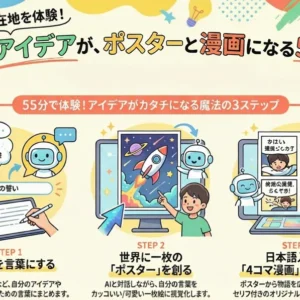 【事前申込】生成AIでつくる「新年の誓いポスター&4コマ漫画づくり」体験会 2026年1月24日(土)15:30〜16:25(55分) 会場:オンライン(ZOOM) 対象:小学3年生〜大人向け(ローマ ...