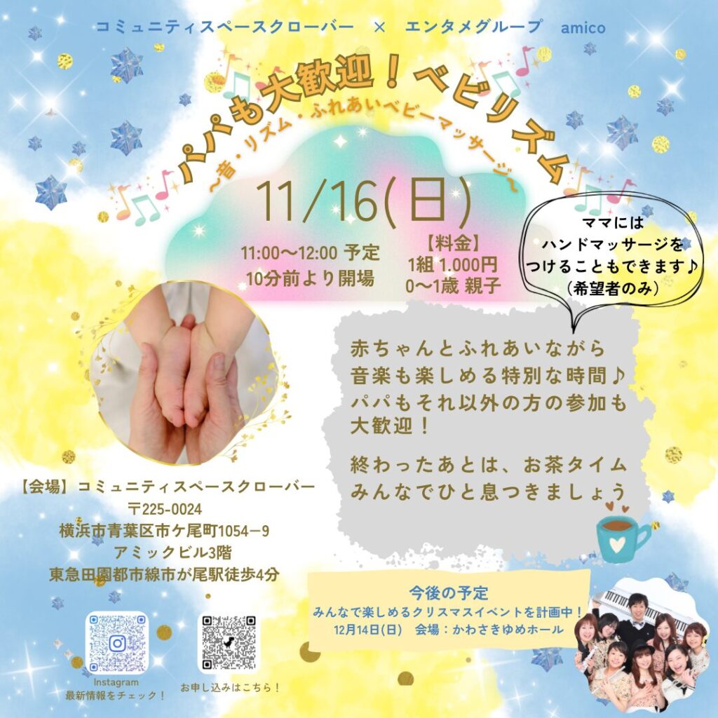 パパも大歓迎!ベビリズム~音・リズム・ふれあいベビーマッサージ~