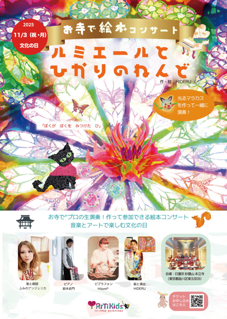 お寺で開催!”参加型”絵本コンサート「ルミエールとひかりのねんど」文化の日
