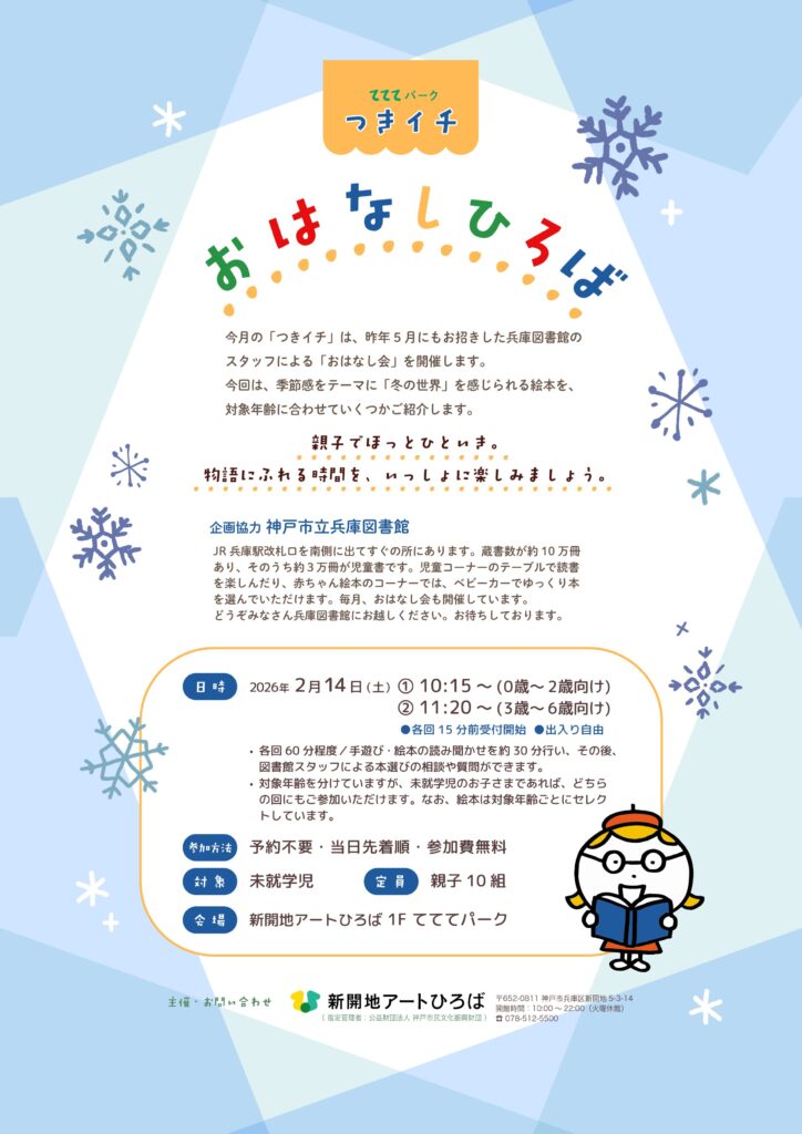 206年2月の「つきイチ」は、昨年5月にもお招きした兵庫図書館のスタッフによる「おはなし会」を開催します。