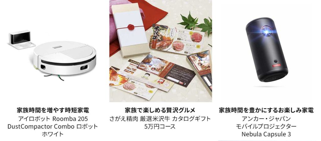 働くパパママを応援する3つのプレゼントをご用意しました。ご家族のライフスタイルに合わせて、3種類の賞品から1つお選びいただけます。