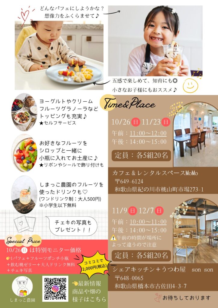 和歌山で開催されるフルーツを使ったパフェ作りイベントのご案内です。